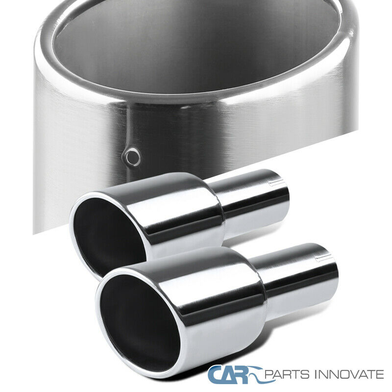 FITMENT: Fit for most domestic & import vehicle with 2.5" tip muffler. DESCRIPTION: Brand new in original packaging. Exactly the same as pictures. Comes with a pair of clamp-on angle cut round shape muffler tips. Made of high quality chrome 3-time polished T304 stainless steel. Dimension: Inlet: 2.5" / Outlet: 4" / Length approx: 10.75". Hardware for installation are included. Made by an ISO certified manufacturer using materials that meet strict OEM requirements. Professional installation is recommended.