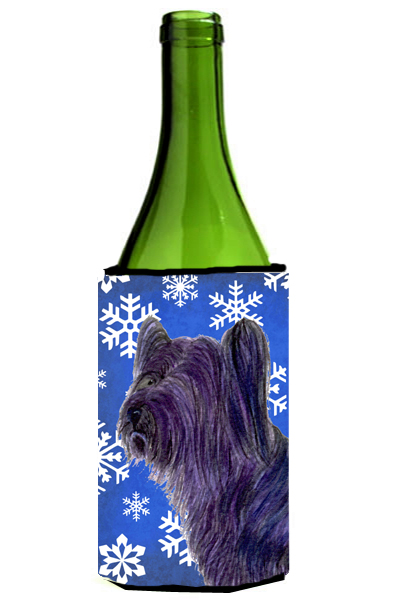 Carolines Treasures SS4601LITERK Skye Terrier Winter Snowflakes Holiday Wine bottle sleeve Hugger