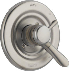 ADA Compliant: Yes. Control Type: Dual Control - Pressure Balance. Diverter Included: Without Diverter. Drain Included: No. Escutcheon Dimensions: 7". Finish: Stainless Steel. Handle Material: Metal. Handle Style: Lever. Handles Included: Yes. Includes: Valve trim, handle. Made in: U.S.A.. Manufacturer Finish: Stainless. Manufacturer Warranty: Limited Lifetime. Manufacturers Collection Name: Lahara. Mounting Location: Wall Mount. Number of Handles: 1. Other Features: MultiChoice Universal Valve allows for future upgrades without altering plumbing, Monitor feature protects from sudden changes in hot or cold water pressure, Brilliance Finish is designed to not corrode, tarnish or discolor. Pressure Balanced: Yes. Requires: Rough in Valve. Rough In Valve Included: No - Trim Only. Rough In Valve Required: R10000-UNBX. Scald Guard: Yes. Temperature Control: Yes. Thermostatic: No. Type of Faucet: Shower Valve and Trim. Valve Type: Volume & Temperature Control Shower Valves and Trim. Water Volume Control: Yes. WaterSense Certified: No. Weight: 1.94.