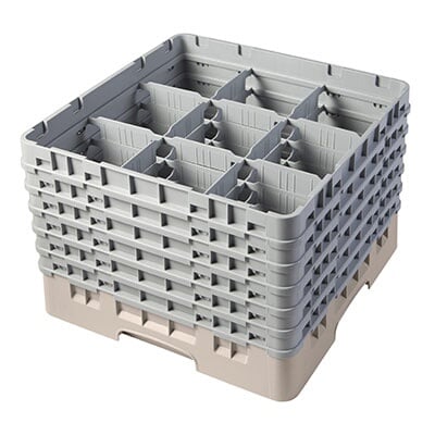 Cambro 9S1114184 Beige Camrack Customizable 9 Compartment 11 3/4" Glass Rack with 6 Extenders