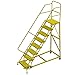 Tri-Arc KDEC108246-Y 8-Step Forward Descent Safety Angle Steel Rolling Industrial and Warehouse Ladder with Perforated Tread, 24" Wide Steps, Yellow Powder Coated Finish