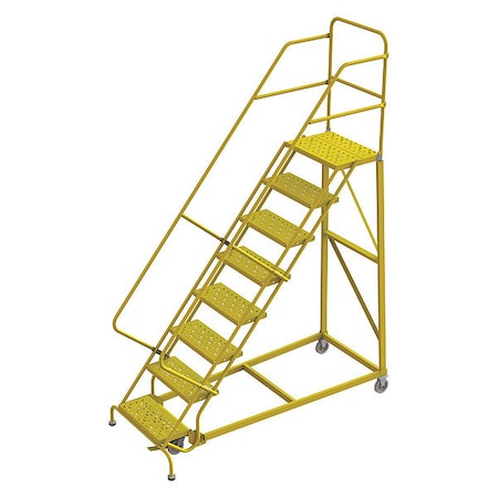 8 Step 24"W Steel Safety Angle Rolling Ladder, Perforated Tread, Safety Yellow - KDEC108246-Y