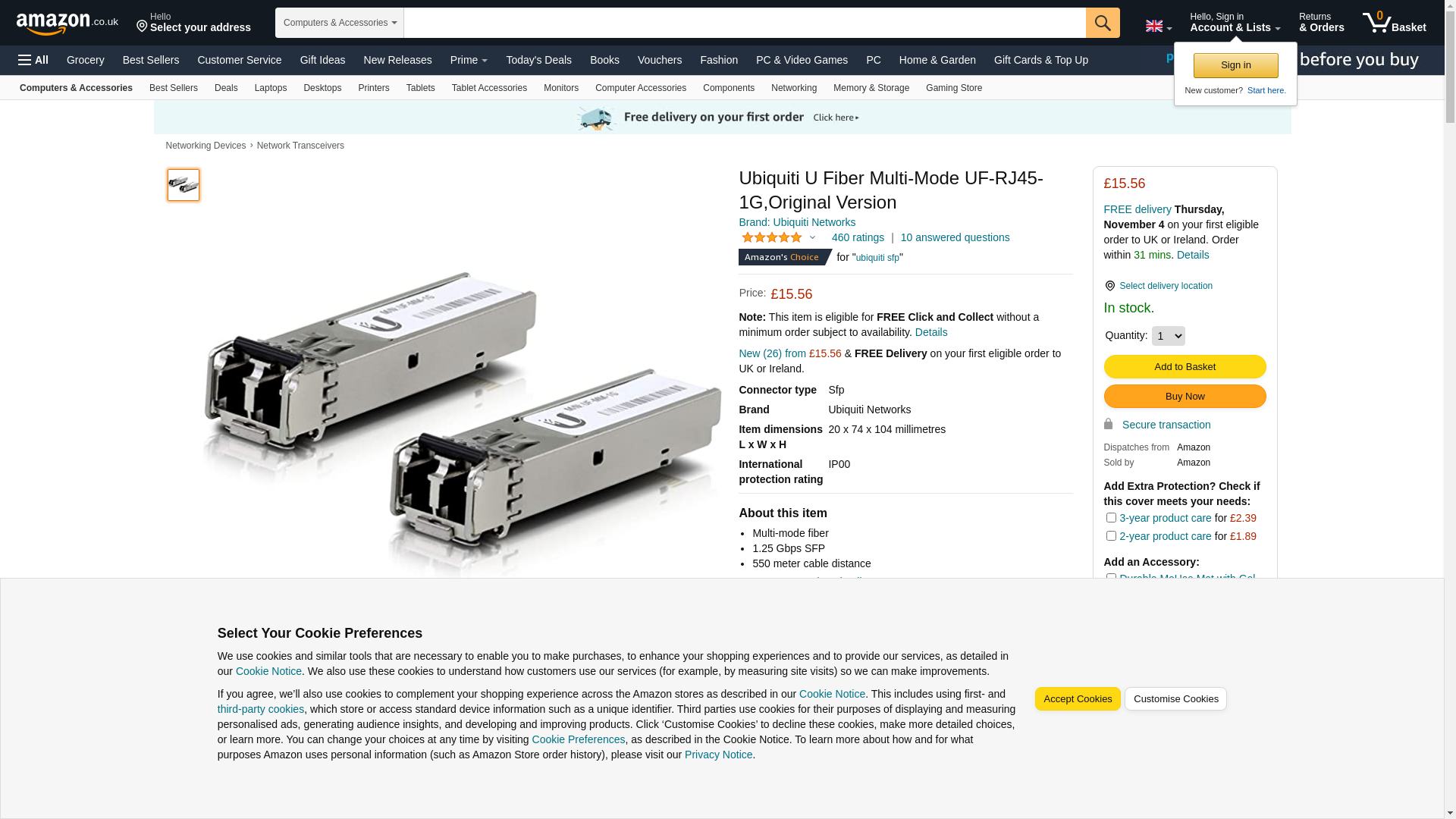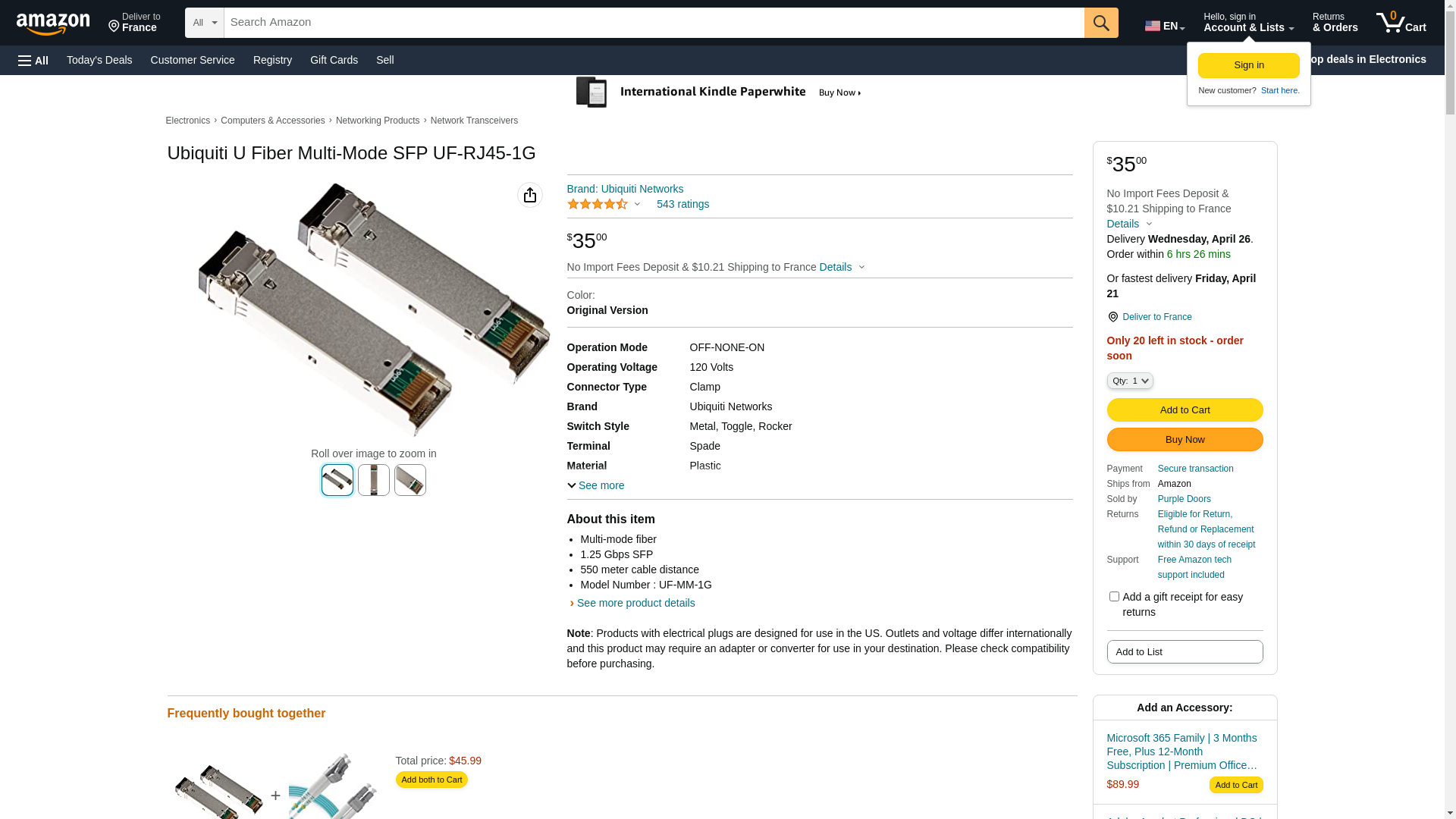Ubiquiti U Fiber UF-RJ45-1G - SFP (mini-GBIC) transceiver module - 10Mb LAN, Transceiver Modules, Networking, UF-RJ45-1G