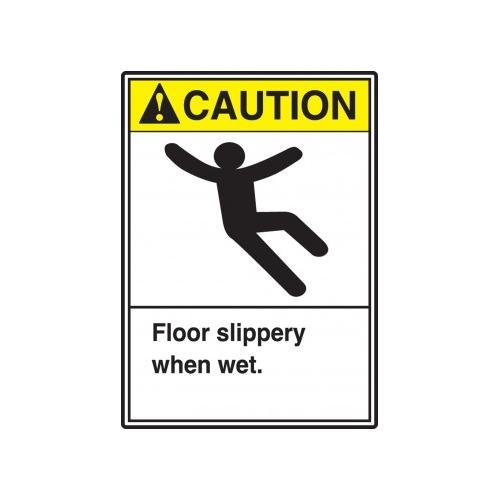 <BR>Fall Arrest Safety Signs. CAUTION FLOOR SLIPPERY WHEN WET (W/GRAPHIC). 10" x 7" Dura Fiberglass Sign<BR>