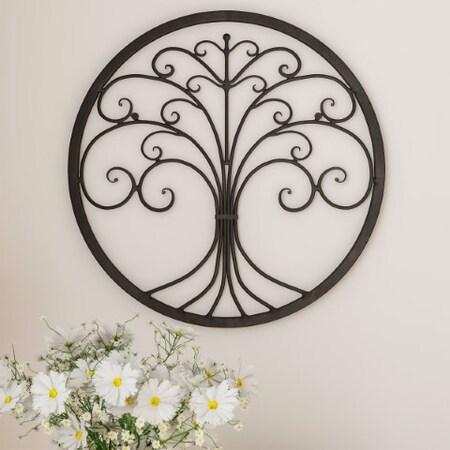 Add a modern flair to your home with the Tree of Life Metal Wall Art by Hastings Home. This wall sculpture is inspired by the Tree of Life: the symbol of how all life is interconnected. Its 3D silhouette features beautiful iron metal scroll openwork. The distressed brown finish blends rustic and modern farmhouse styles to enhance your entryway, living room, bedroom or kitchen decor. It features built-in hanger holes, and the included mounting hardware keeps it safe and secure. The unique design of this contemporary round tree wall art is sure to catch the eyes of your family and friends. It makes a great gift for weddings, housewarming parties, showers or other special occasions.
