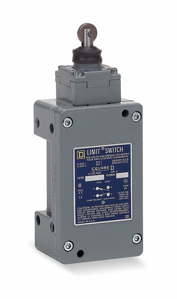 Square D 9007CR53D Heavy Duty NEMA Limit Switch for Hazardous Locations, 1 NO + 1 NC Contacts, Top Roller Plunger Head