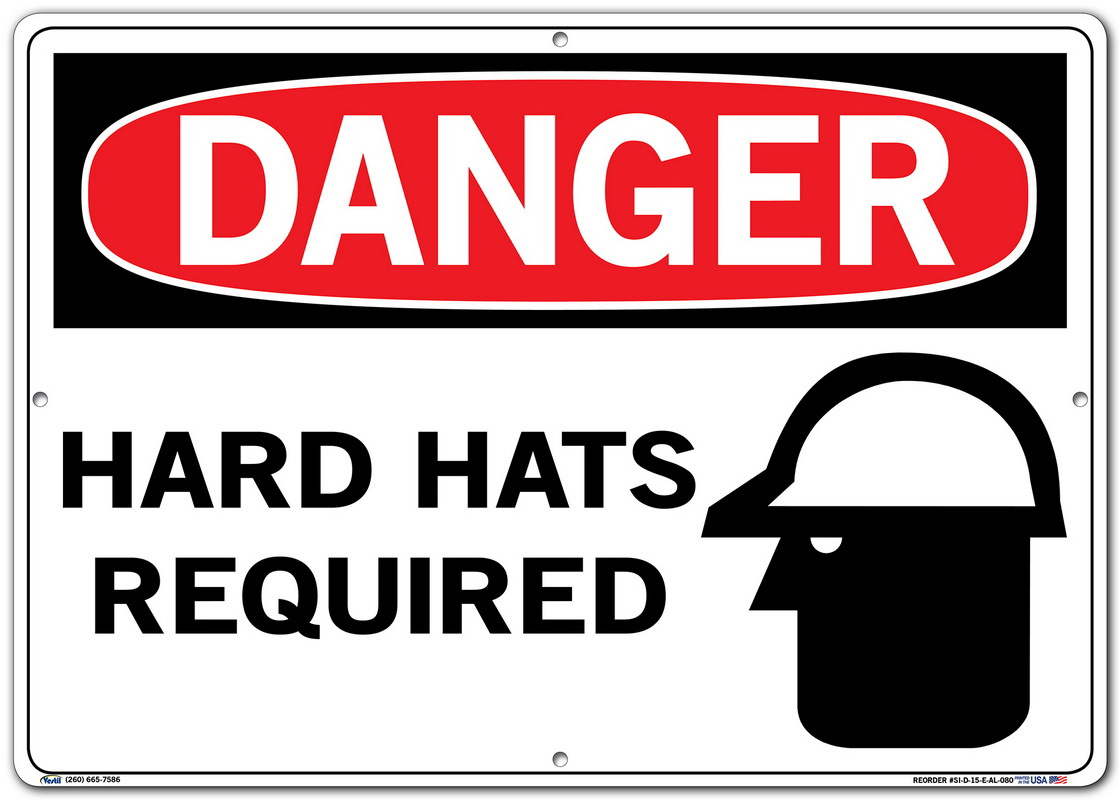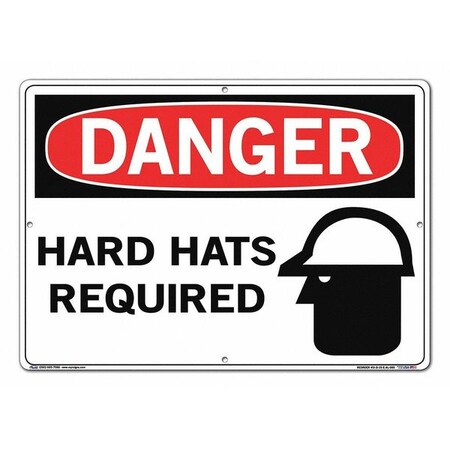 Vestil SI-D-15-E-AL-080 HARD HATS REQUIRED Danger Sign, Aluminum, 0.080" Overall Size, 20.5" W x 14.5" H