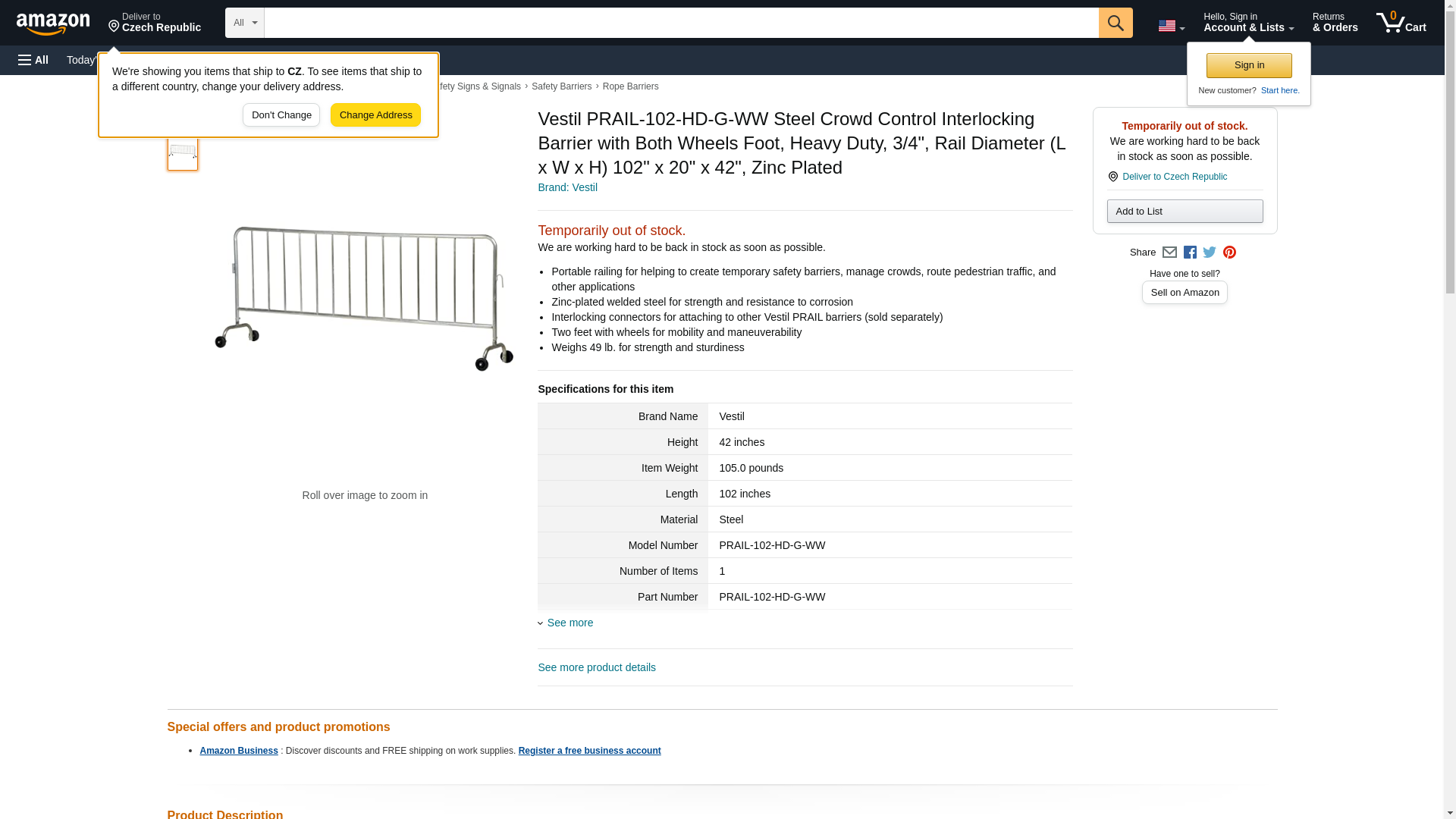 | VESTIL-PRAIL-102-HD-G-WW | 1 | This item ships directly from Vestil | 1 | 1 @ $232.99 | |