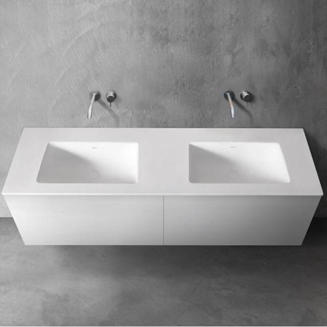 Blu Bathworks SA1800-01M | Blu Bathworks SA1800-01M series 1800 blu stone integrated countertop & double basin, 1/2" thickness, White matte, 71 x 20.25 x 42737 | AF Supply