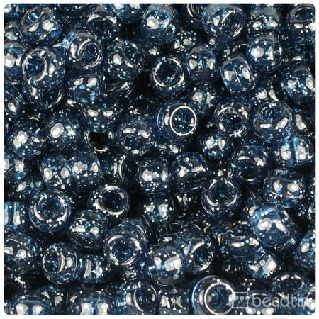 <ul> <li>QUANTITY: Approx. 24 Beads</li> <li>SIZE: 9x6mm barrel with a 4mm hole</li> <li>STYLE: Montana blue in a silver sparkle finish</li> <li>MATERIAL: Non-toxic polystyrene plastic - Made in the USA</li> </ul>