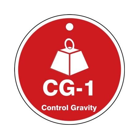 Accuform TDK101VPM Plastic "CG-1 Control Gravity" Energy Source Shape ID Tag, 2-1/2" W x 2-1/2" L, White on Red (Pack of 5)