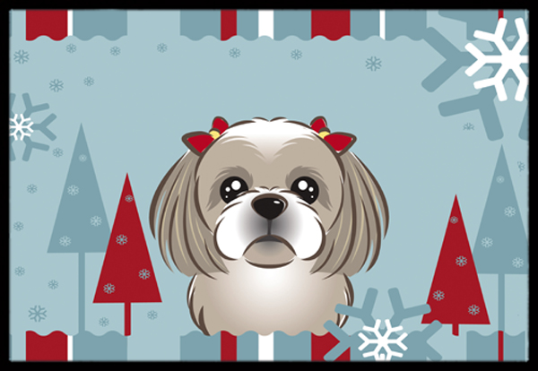 Carolines Treasures BB1746MAT Winter Holiday Gray Silver Shih Tzu Indoor & Outdoor Mat, 18 x 27 in.