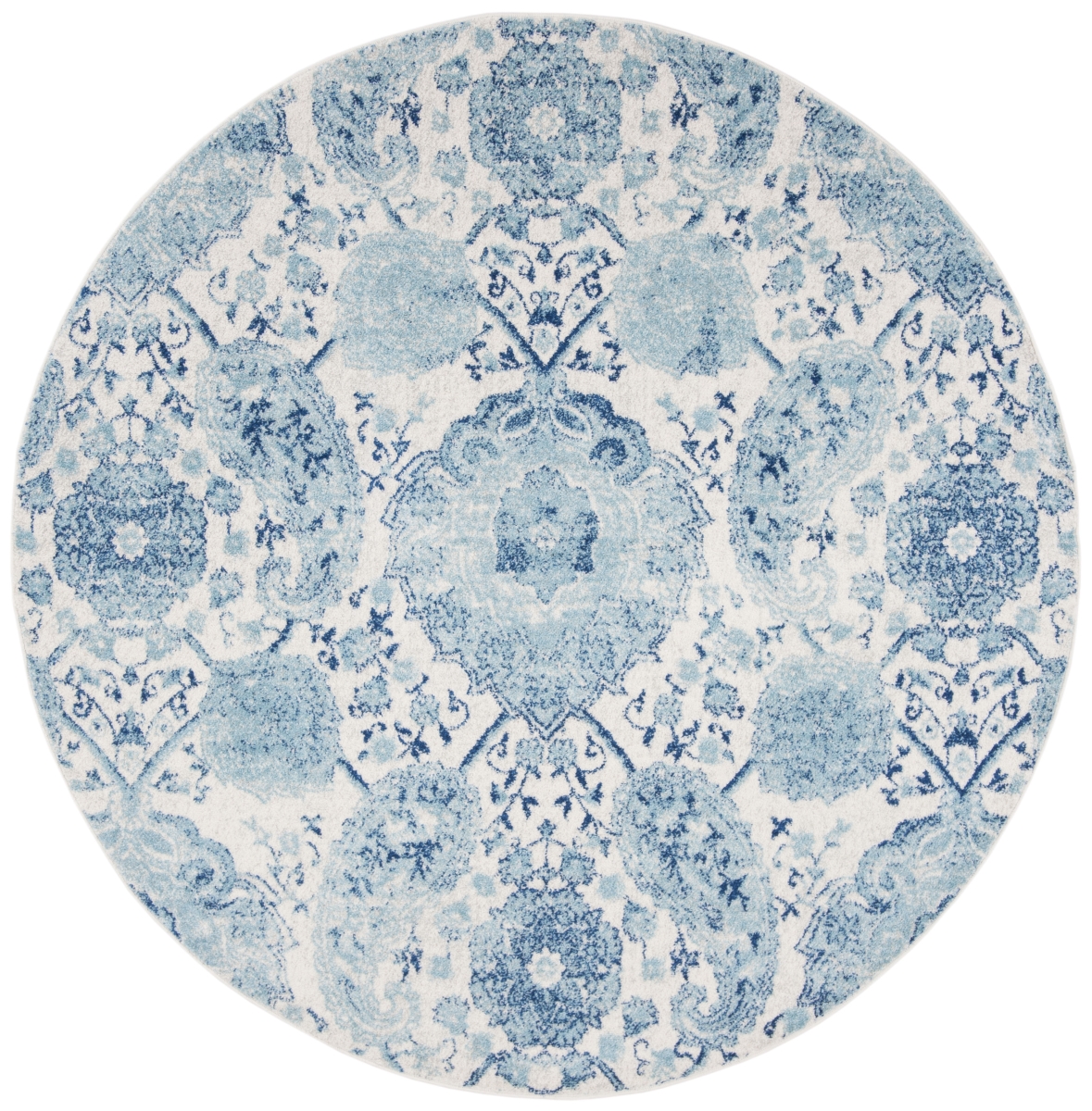 Safavieh MAD600E-3R 3 x 3 ft. Madison Oriental Round Power Loomed Rug, Cream & Turquoise
