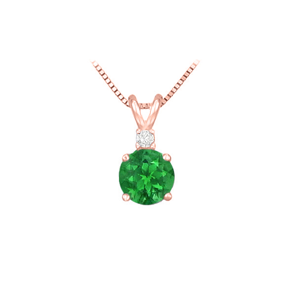 Fine Jewelry Vault UBPDVRD600EP Diamond and Emerald Solitaire Pendant 14K Rose Gold 1.00 CT TGW