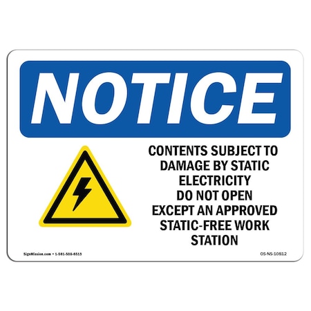OSHA Notice Sign, Contents Subject To Damage By With Symbol, 24in X 18in Decal