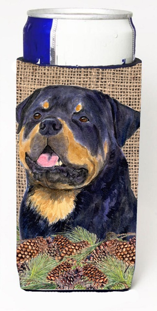 Caroline's Treasures SS4059MUK Rottweiler on Faux Burlap with Pine Cones Ultra Hugger for slim cans Can Cooler Sleeve Hugger Machine Washable Drink Sleeve Hugger Collapsible Insulator Beverage Insulat