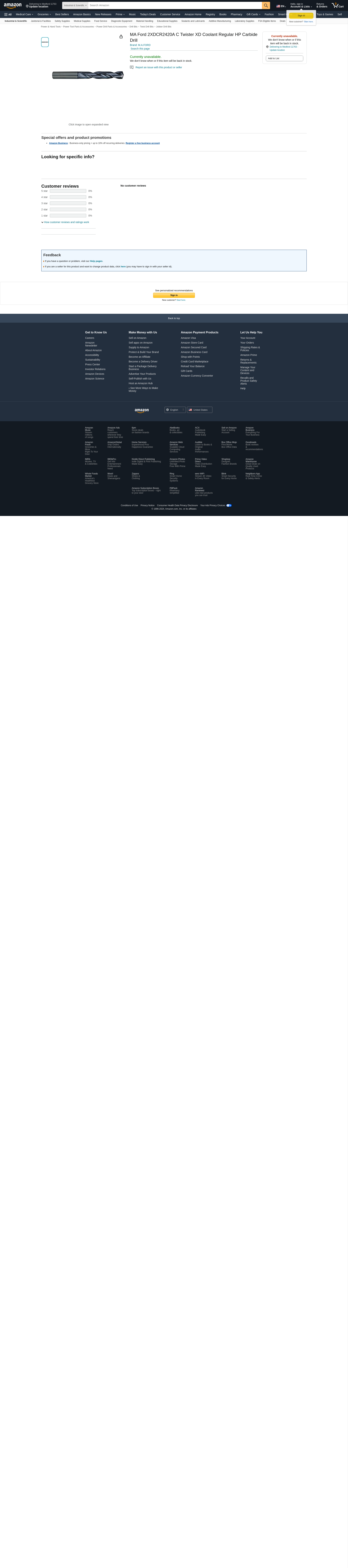 MA Ford 2XDCR2420A C Twister XD Coolant Regular HP Carbide Drill