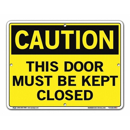 Vestil SI-C-59-B-AL-040 THIS DOOR MUST BE KEPT CLOSED Caution Sign, Aluminum, 0.040" Overall Size, 12.5" W x 9.5" H