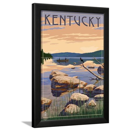 <ul> <li>Title: Kentucky - Lake Sunrise Scene</li> <li>Artist: Lantern Press</li> <li>Paper Type: Art Print</li> <li>Product Type: Framed Art Print</li> <li>Framed in SOHO Black</li> <li>Arrives ready-to-hang for fast, simple installation</li> <li>Framed Size: 15.5x22 in.</li> <li>Handcrafted in the USA</li> </ul>