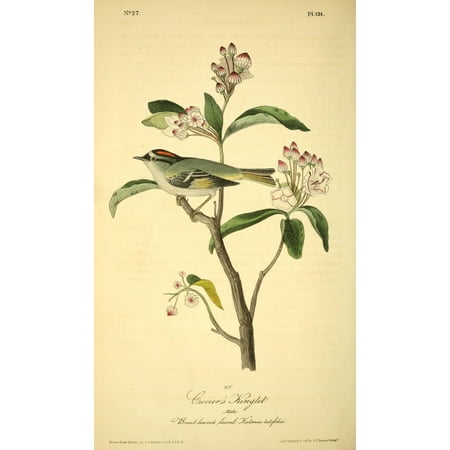 J.J. Audubon Stretched Canvas Art - Birds of America 1844 -Cuvier's Kinglet - Medium 18 x 24 inch Wall Art Decor Size.