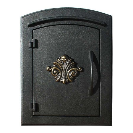 QualArc MAN-S-1401BL Manchester with Security Chute Column Mount Mailbox with Decorative Scroll Door in Black