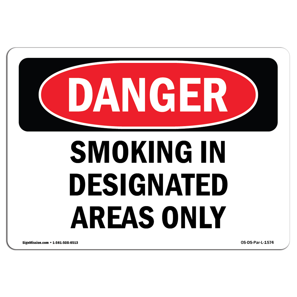 SignMission OS-DS-D-1014-L-1574 Danger Smoking in Designated Areas Only OSHA Decal Sign