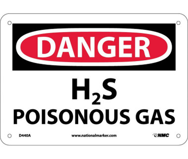 Danger: H2S Poisonous Gas - 7X10 - .040 Alum - D440A - Jendco Safety Supply