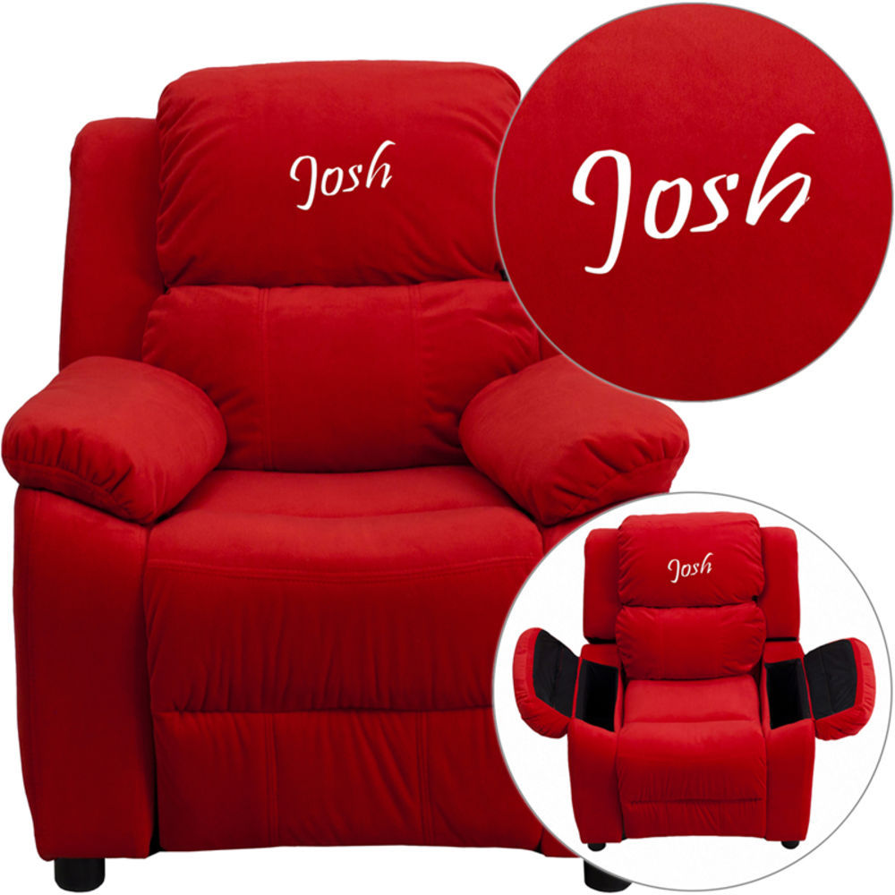Flash Furniture Red Microfiber BT-7985-KID-MIC-RED-TXTEMB-GG: Personalized Deluxe Padded Kids Recliner with Storage Arms