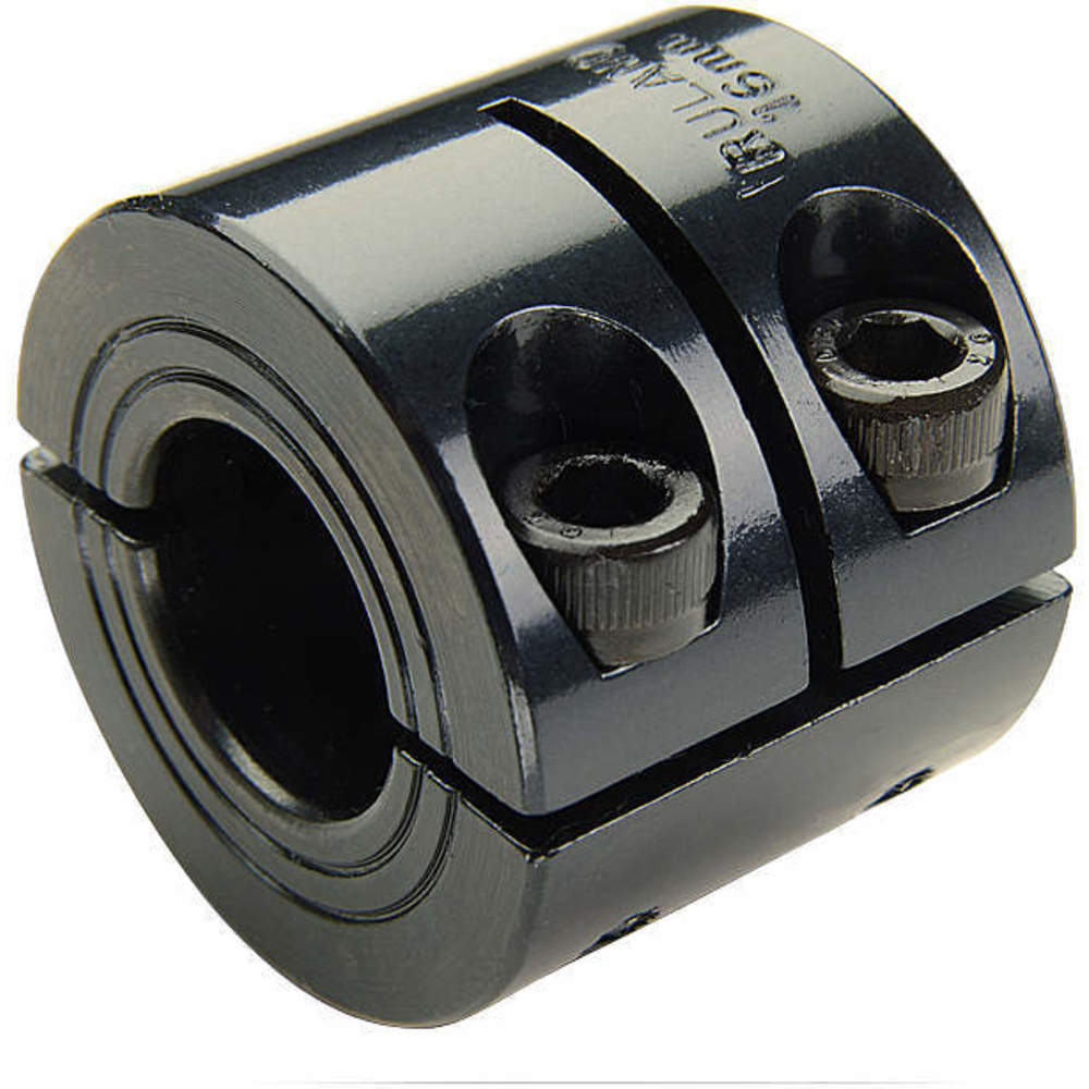 | Feature | Two-piece clamping shaft collar for applications requiring a stronger holding power and higher axial load capacity than setscrew or one-piece clamping collars |