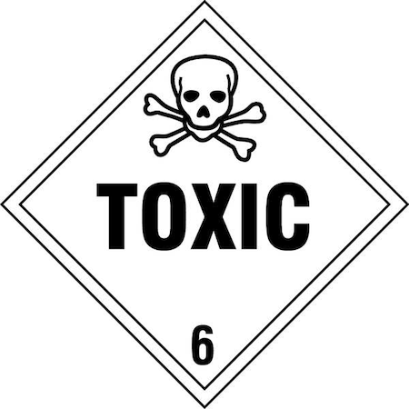 'Vehicle Placard, Legend Toxic, Height 10-4/5 In., Width 10-4/5 In., Rigid Styrene Material, Class 6, Black/White Legend/Background Color, 49 CFR 172 Standards'