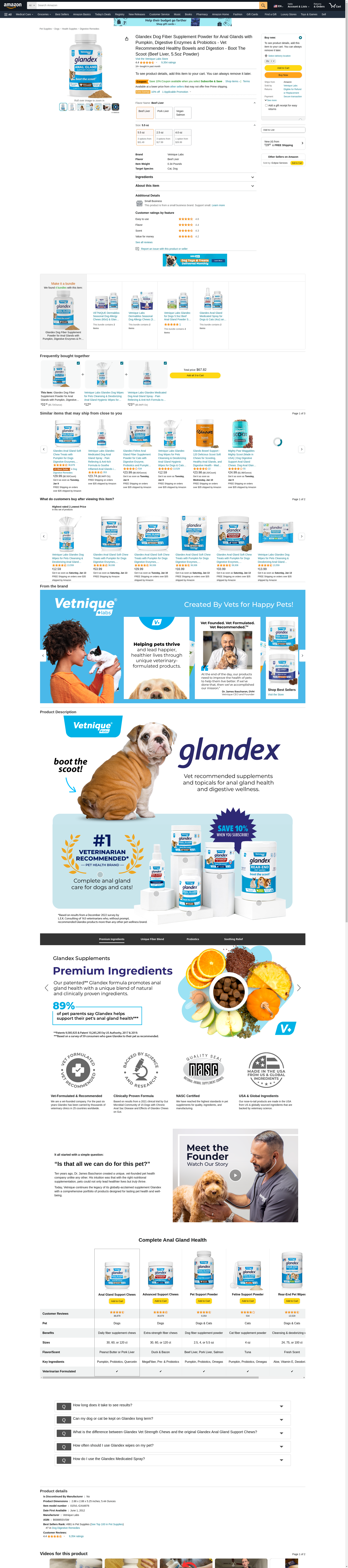Glandex Dog Fiber Supplement Powder for Anal Glands with Pumpkin, Digestive Enzymes & Probiotics – Vet Recommended Healthy Bowels & Digestion - Boot The Scoot 5.5oz Beef Liver - by Vetnique Labs