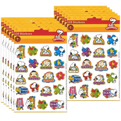 Eureka Peanuts Spring Theme Stickers, Assorted Sizes, 120 Per Pack, 12 Packs (Eu-655057-12)