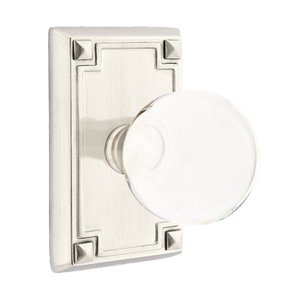 Crystal Door Hardware Collection - Bristol Privacy Door Knob with Arts & Crafts Rectangular Rose in Satin Nickel by Emtek Hardware - 5205BLUS15238 | MyKnobs