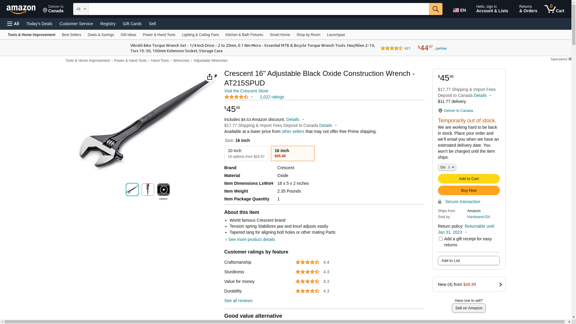 Crescent 16" Adjustable Black Oxide Construction Wrench - AT215SPUD