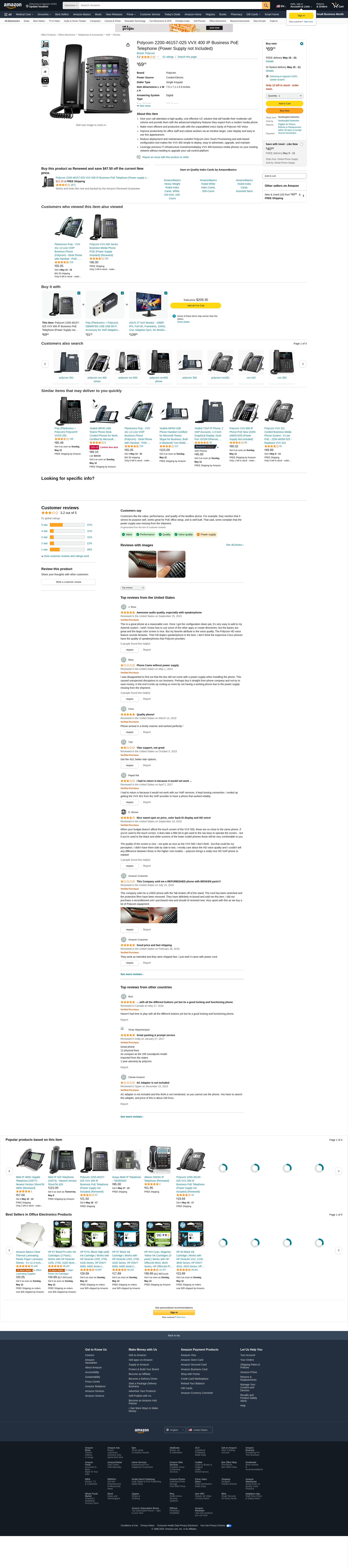 POLYCOM 2200-46157-025 VVX 400 12-line Desktop Phone with HD Voice. PoE without Power S