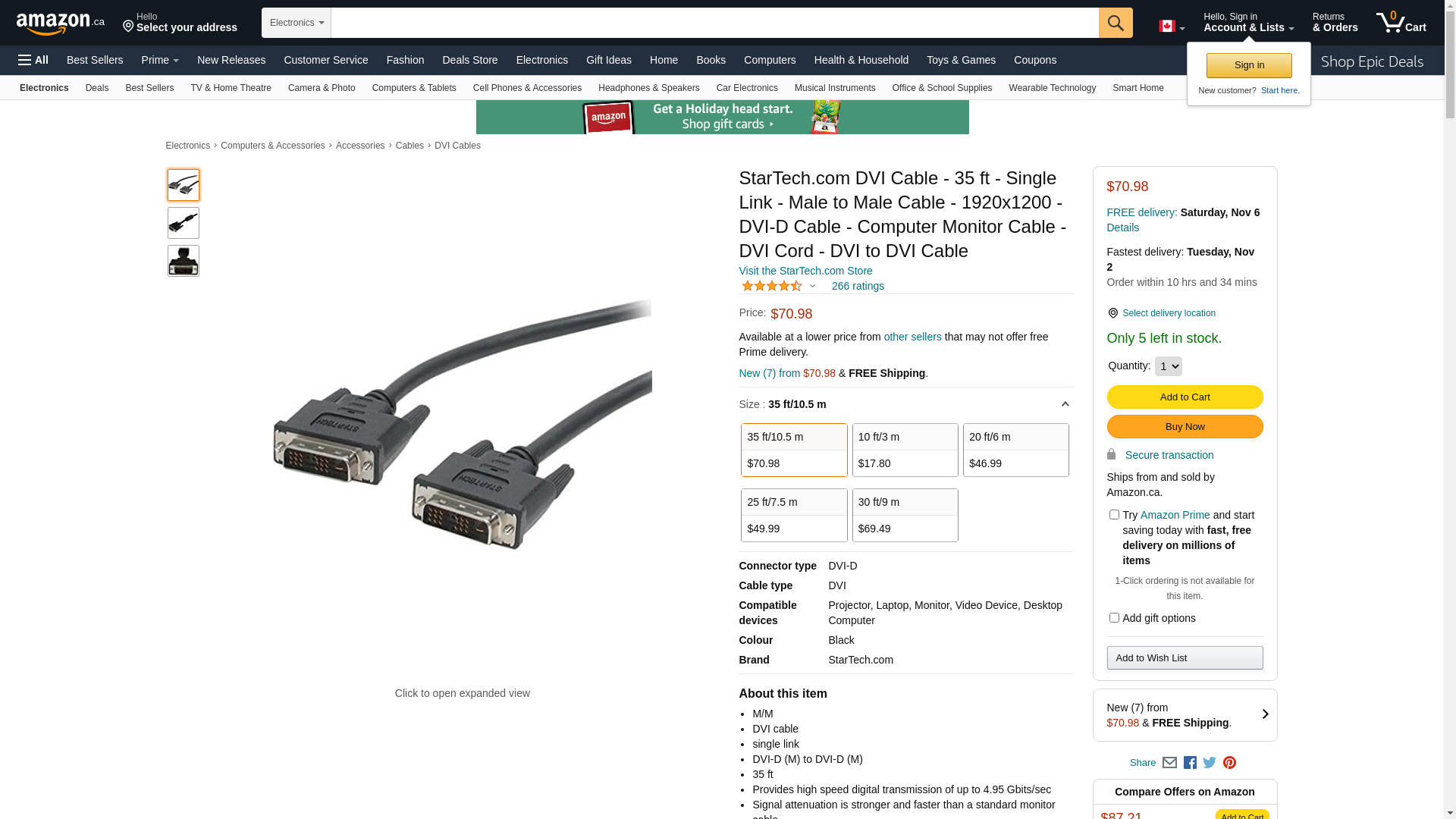Amazon.com: StarTech.com DVI Cable - 35 ft - Single Link - Male to Male Cable - 1920x1200 - DVI-D Cable - Computer Monitor Cable - DVI Cord - DVI to DVI Cable (DVIDSMM35) : Electronics