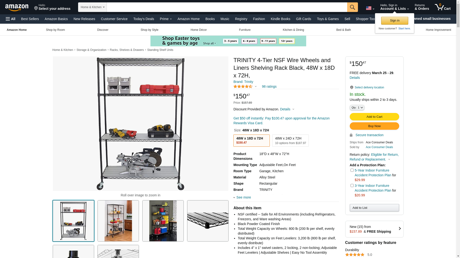 - MOBILITY AND DIMENSIONS: (2) Locking and (2) Non-locking wheels provide easy mobility; NSF Certification for food storage; Assembled dimensions 48" W x 18" D x 72-77" H; For indoor use
