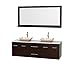 Wyndham Collection Centra 72 inch Double Bathroom Vanity in Espresso, White Man-Made Stone Countertop, Avalon Ivory Marble Sinks, and 70 inch Mirror
