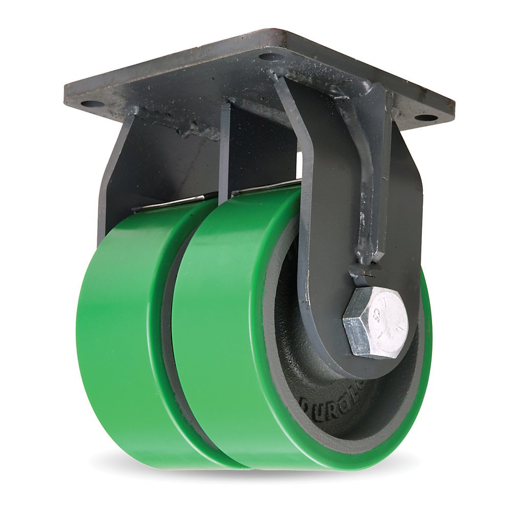 The dual wheels on the Maxi-Duty casters addresses the problem of how to restrict overall height while providing adequate carrying capacity on resilient tread wheels. Dual wheel casters also improve stability and swivel more easily than wider-face single wheels because differential action reduces the aoescrubbinga effect of soft treads against the floors. Both the secondary thrust bearing and the main load bearing are precision-made, and the new HPI Swivel Technology is now a standard feature in this dual wheel series providing smoother swiveling and longer life.