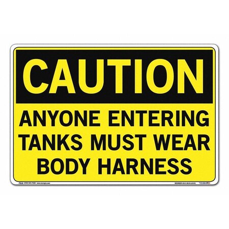 Vestil SI-C-80-D-LB-011 ANYONE ENTERING TANKS MUST WEAR BODY HARNESS Caution Label, Vinyl, 0.011" Overall Size, 18.5" W x 12.5" H