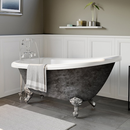 Cambridge Plumbing Scorched Platinum 61-inch x 28-inch Acrylic Slipper Bathtub with-inch 7-inch Deck Mount Faucet Holes and Polished Chrome Ball and Claw Feet