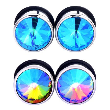 <ul> <li>Material: 316L Steel</li> <li>Gauge: 2g(6mm),0g(8mm),00g(10mm)</li> <li>Diameter:(approx)8mm,10mm12mm</li> <li>Height:(approx)11mm-13mm</li> <li>Color: Blue, Colorful</li> <li>Package Including: 1 Pair</li> </ul>
