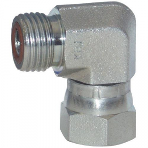 Steel 1-3/16"-12 Male Flat Face x Fem Flat Face Swivel Nut 90° Elbow