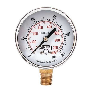 Winters Gauge,Pressure,0 to 100 psi,2-1-2 in. PEM214LF ZO-G6215456 - SIM Supply