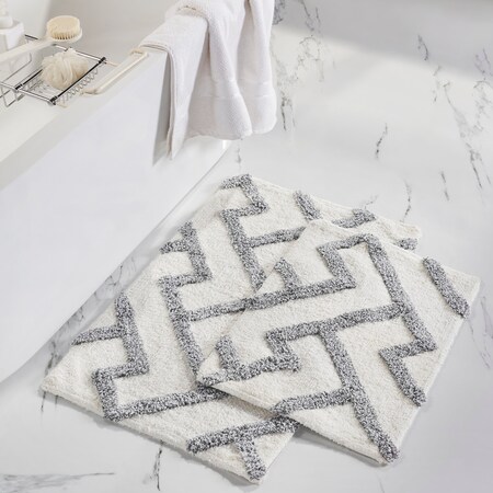 Treat your feet and add cozy comfort to your everyday bath routine with our Modern Threads Cotton Textured Bath Mat Set. Designed to transform your hard bathroom floors into luxuriously soft texture, these bath mats feature a textured design for a dimensional look. This coordinated bath rug set includes two bath mats, measuring 17 inches x 24 inches and 21 inches x 30 inches. The 2-piece rug set is made from ultra-soft and absorbent cotton material with a non-slip backing for secure footing and added safety. You can keep this bath rug set looking and feeling like new by machine washing them in cold water and drying on low setting.
