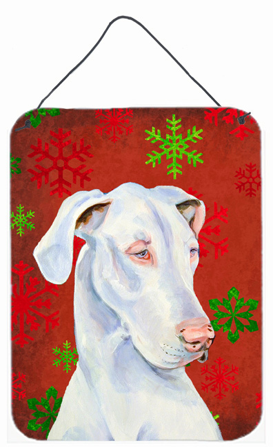 Carolines Treasures LH9311DS1216 Great Dane Red and Green Snowflakes Christmas Aluminium Metal Wall Or Door Hanging Prin