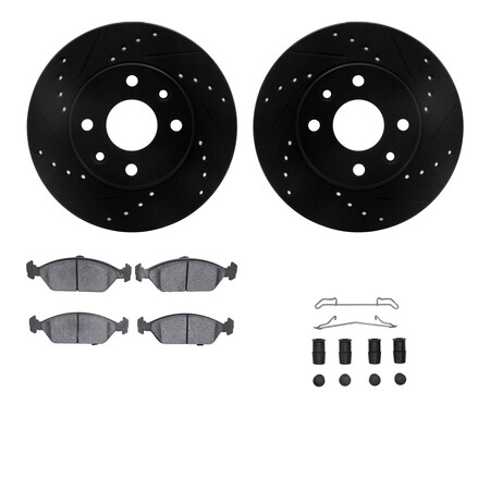 8312-21018, Rotors-Drilled, Slotted-BLK w/ 3000 Series Ceramic Brake Pads incl. Hardware, Zinc Coat