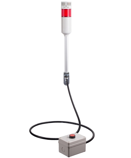 Menics ATEPR-15-R-Z 1 tier flashing tower light. 110V. Red lens. Adjustable buzzer. 9.45" pole, push button control box connected by 15 ft cable & 6 foot power cord.