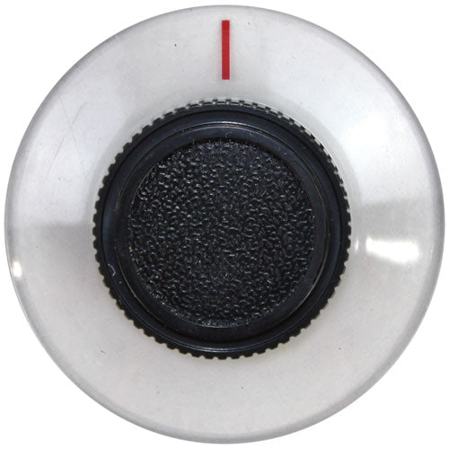 Indicator Knob, [ 2-1/4" DIA ] Black & Clear with Red Line, [MOUNT .187"] [ FLAT DOWN ], Wolf Grill EME-37, TME-36/A/B/C, ME-37, TMM-36/A/B/C, TMM-37/A, TMM-38. <P>Specifications</P> Ship Weight: 0.04 lbs </BR>Diameter: 2 1/4