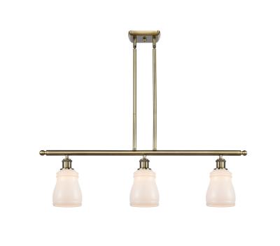 INNOVATIONS LIGHTING 516-3I-AB-G391-LED BALLSTON ELLERY 36 INCH 3 LIGHT WHITE GLASS ISLAND LIGHT, ANTIQUE BRASS, LED